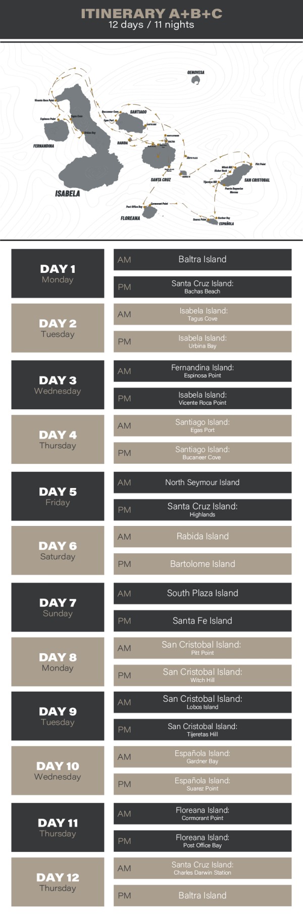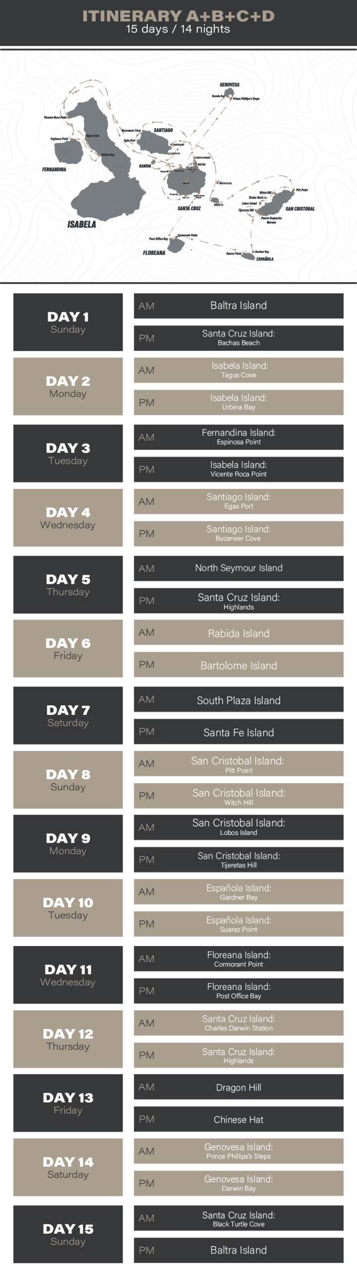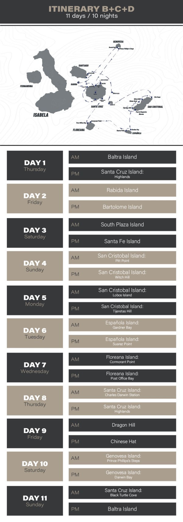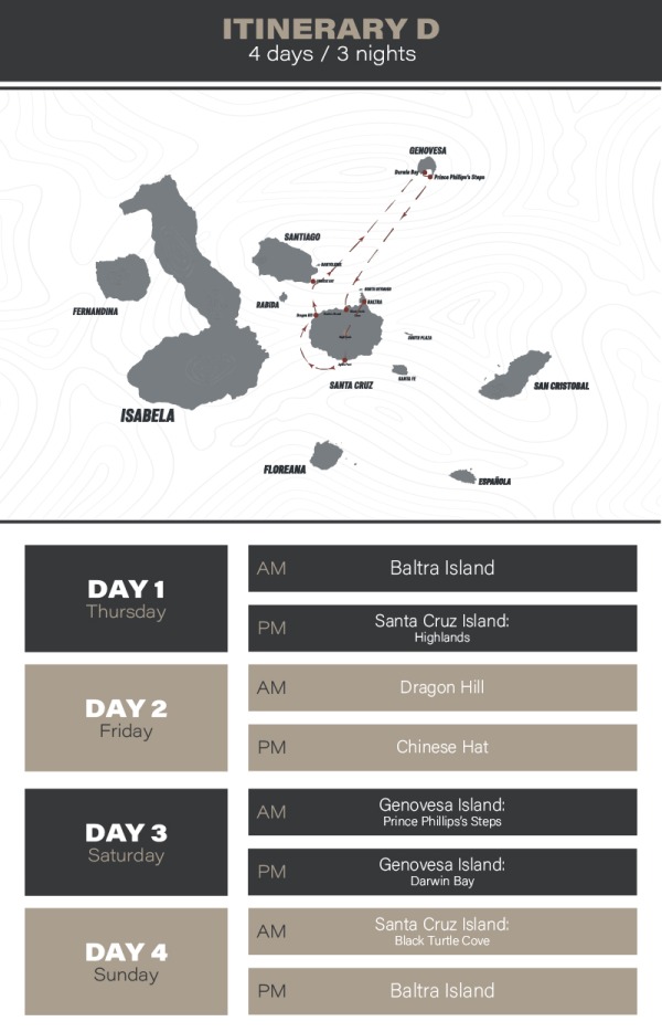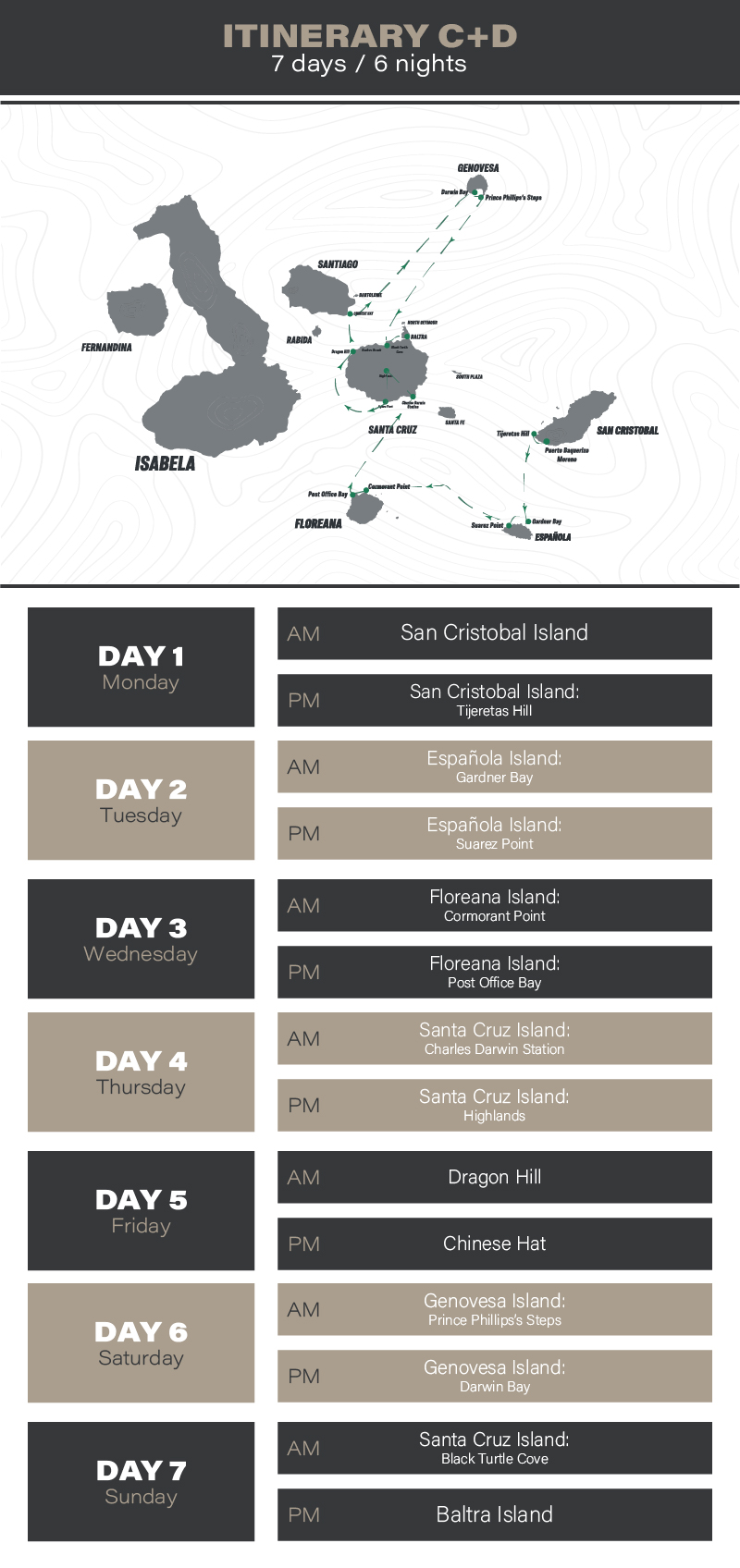 Early Arrival: If your flight arrives at the islands earlier than our scheduled operational flight, you will be required to wait at the Galapagos airport until the arrival of the rest of the group on your cruise.