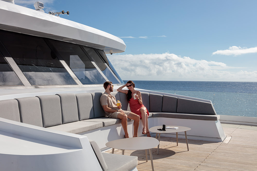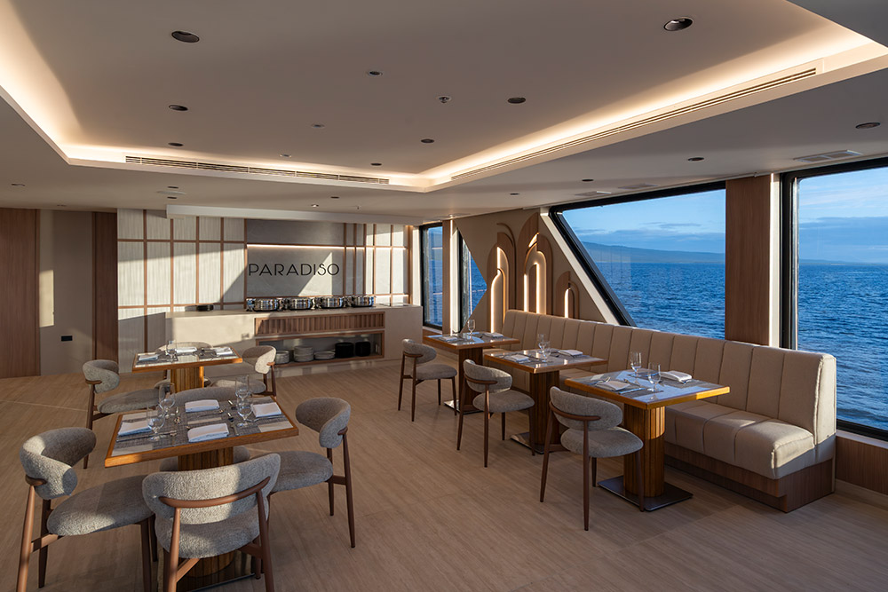Hermes defines the modern, intimate expedition experience by offering an impressive variety of social spaces—effectively challenging the notion that only large ships can provide diversity. Guests can indulge in interior and exterior areas, including a welcoming lounge, two exquisite restaurants, and a dedicated library, ensuring a supremely relaxing and intimate atmosphere throughout your exceptional Galapagos Luxury Cruise.