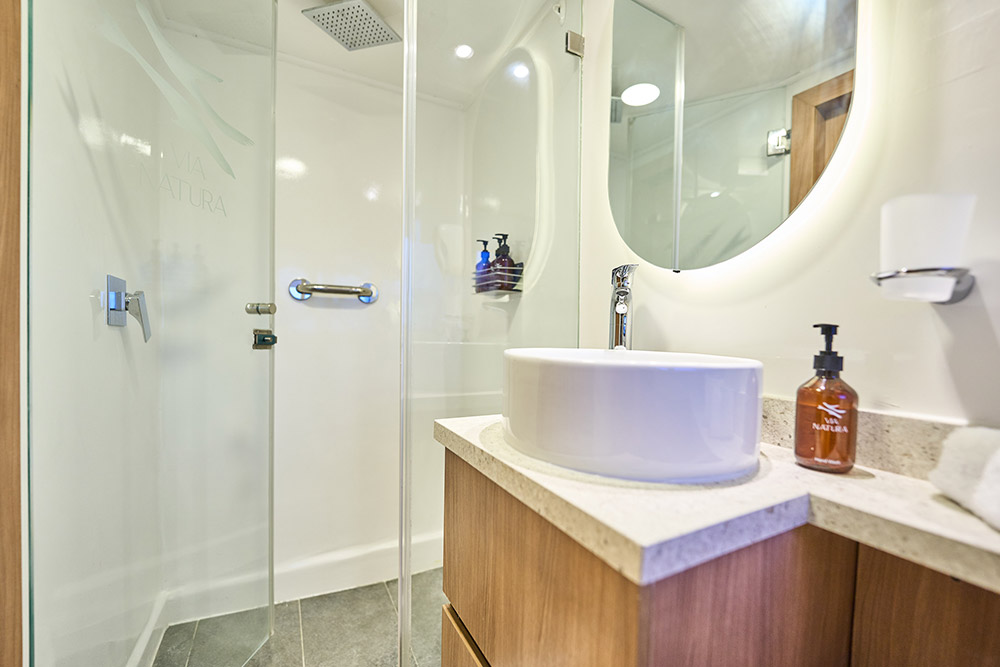 Retreat to your sanctuary after a day of discovery. The Monserrat offers ten well-appointed cabins—seven twin and three double-bed layouts—distributed across the Upper and Lower Decks. Every cabin is equipped with a private ensuite bathroom and essential air conditioning for your comfort. Enjoy sweeping views from the large windows in our Upper Deck cabins.
