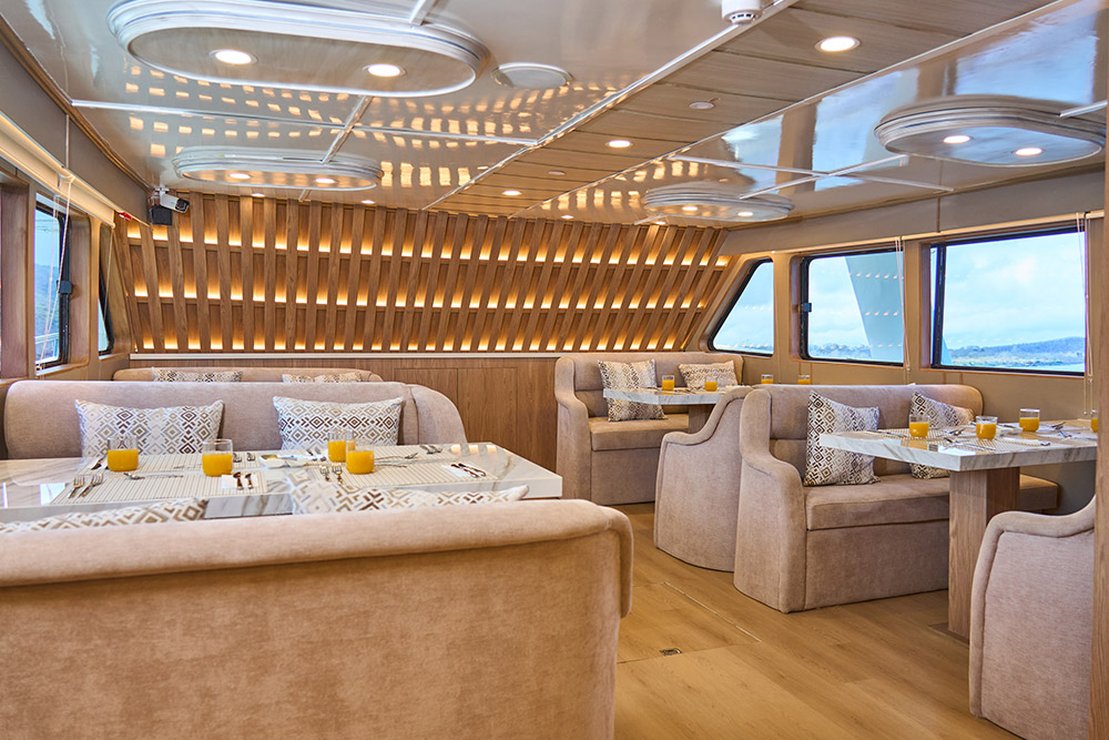 Unlike large cruise ships, our yacht is intentionally small-scale for an intimate Galapagos experience. We define elegance through the details, ensuring every moment is personalized. This bespoke journey guarantees you the space and tranquility to fully relax and soak up the inviting private ambience of your private retreat.